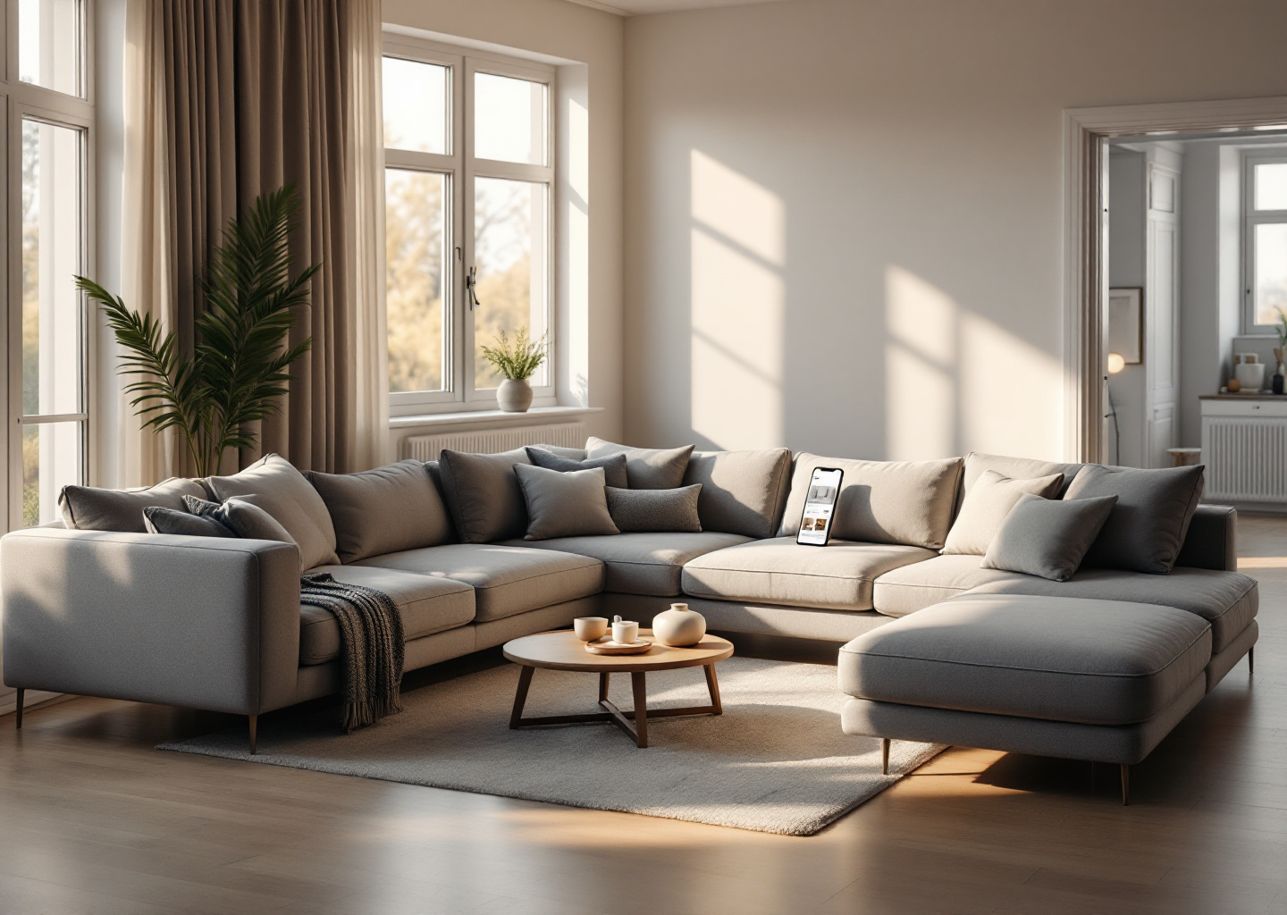 Four layouts, one L-shaped room, and the 60-30-10 spatial rule that finally made our modular sofa work. Here's the scanning workflow I use with clients.